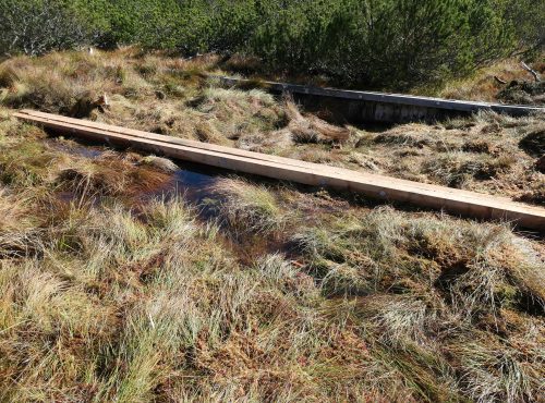 Von der Arge NATURSCHUTZ in Zusammenarbeit mit den Grundeigentümern, DI Herwig Müller und der Bezirkshauptmannschaft Feldkirchen wurde die Sanierung des St. Lorenzer Hochmoor in’s Leben gerufen. Es wurden im Herbst 2023 und Oktober 2024 mehrere Spundwände saniert und neu errichtet. Außerdem wurden die Torfstichkanten abgeschrägt, damit sich der Wasserspiegel stabilisieren kann und keine neuen Erosionsgräben oder Längsrissen bilden können.